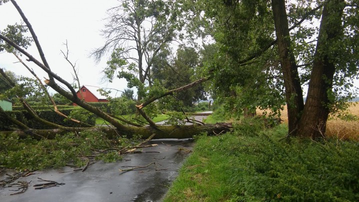 Do innej niebezpiecznej sytuacji doszło w sołectwie Czernin (gmina Sztum), gdzie nawałnica pozbawiła dopływu prądu do okolicznej chlewni. Jak informuje jeden z mieszkańców dość szybko pojawiła się jednostka straży pożarnej z Komendy Powiatowej Państwowej Straży Pożarnej w Sztumie, która także zajęła się odblokowaniem drogi Czernin – Ramzy. Znajdowało się tam powalone drzewo i sterta konarów, co zresztą widać na załączonych zdjęciach.