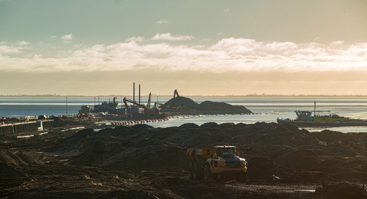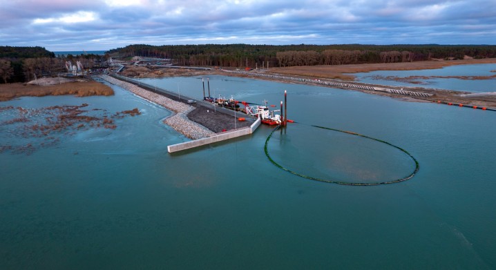 - Zakres prac obejmuje budowę portu osłonowego od strony Zatoki Gdańskiej, kanału żeglugowego ze śluzą i konstrukcją zamknięć wraz ze stanowiskami oczekiwania od strony Zatoki i Zalewu, a także nowy układ drogowy z obrotowymi mostami, które umożliwią przejazd nad kanałem przed śluzą i za śluzą oraz budowę sztucznej wyspy – wylicza Jacek Szymański, dyrektor projektu z konsorcjum NDI/Besix. – Dotąd prace odbywały się zgodnie z przyjętym harmonogramem. Mamy nadzieję, że dzięki sprzyjającym warunkom atmosferycznym oraz wysokiemu zaangażowaniu wszystkich pracowników, nadal uda się utrzymać takie tempo robót – podkreśla Jacek Szymański.