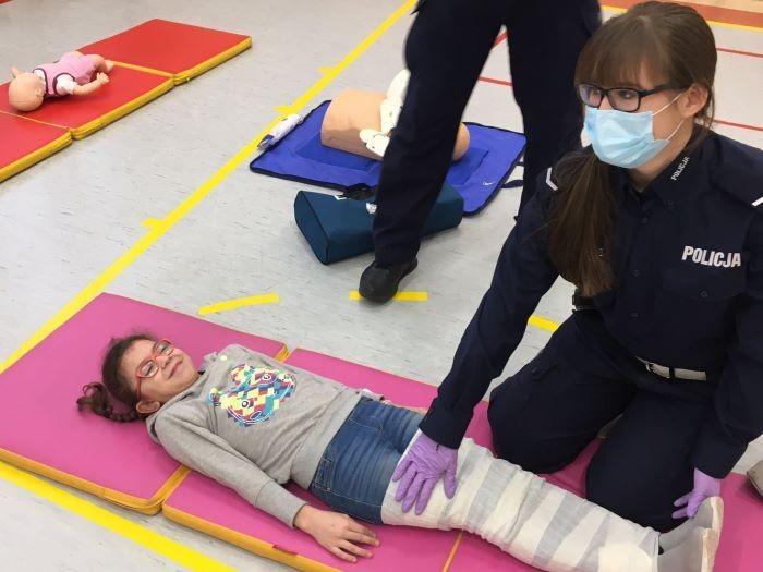 Podczas spotkań mundurowi przypomnieli dzieciom, jak należy prawidłowo udzielać pierwszej pomocy. Dzieci uczyły się wzywania służb ratunkowych, przekazywania ważnych informacji na temat poszkodowanego i miejsca zdarzenia. Poznały sposoby sprawdzania przytomności i udzielenia pierwszej pomocy w różnych sytuacjach. Policjanci mówili także o tych dzieciach z naszego kraju, których nazywa się „Małymi bohaterami” za ratowanie życie i zdrowia dorosłym, często członkom rodziny. Podczas spotkania uczniowie ćwiczyli na fantomie m.in. zasady prawidłowej oceny przytomności, udrażnianie dróg oddechowych i prawidłowe wykonanie resuscytacji krążeniowo- oddechowej.