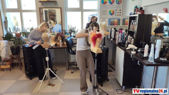 Przygotowania do konkursu zostały uchwycone naszą kamerą – uczennice czarowały fryzury konkursowe, prezentując zarówno precyzję wykonania, jak i artystyczną wizję.